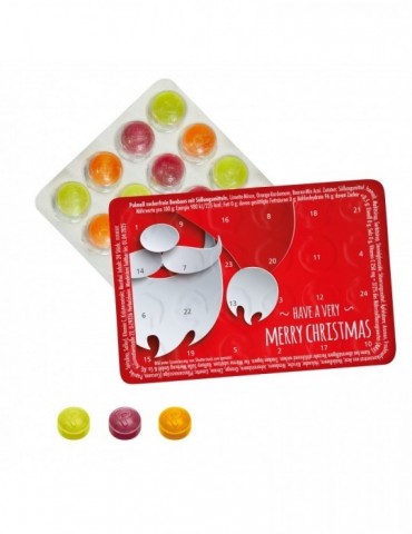 Blister-Adventskalender mit Aromaschutz, Deckfolie silberfarben mit Metalliceffekt. Änderungen des Standardmotivs, sowie Personalisierung nicht möglich!
