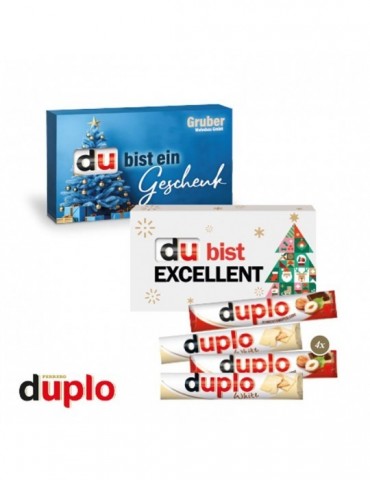 - 4 duplo Riegel, (ca. 72 g) 2 x duplo klassisch, 2 x duplo weiß. Jeweils ein duplo für jeden Adventssonntag.