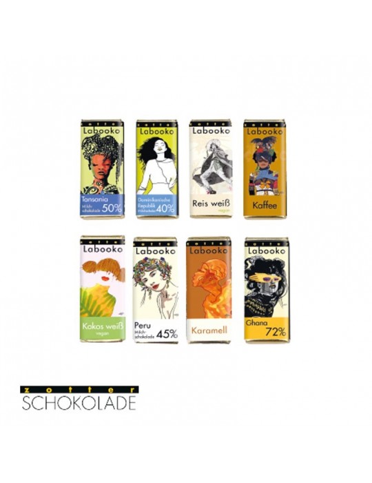 Fair gehandelter Bio-Kakao in bester Qualität! Kleine Labooko-Minis entführen Sie in die Welt des Kakaos, mit ansteigenden Kakaoprozenten von süßer Milchschokolade bis hin zu 72 % Kakao. Erleben Sie Kakaoraritäten aus den unterschiedlichsten Ländern von Tansania, aus Peru, Ghana und der Dominikanischen Republik. Lassen Sie sich von Kokos, Kaffee, weißer Schokolade und Karamell die Adventszeit versüßen.