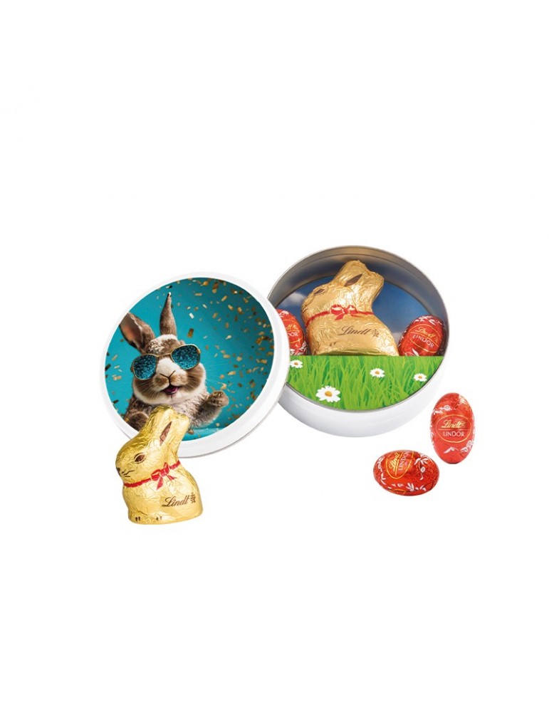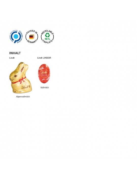 - Dose, weiß, 98 % recycelbares Weißblech; Einleger: Karton, weiß