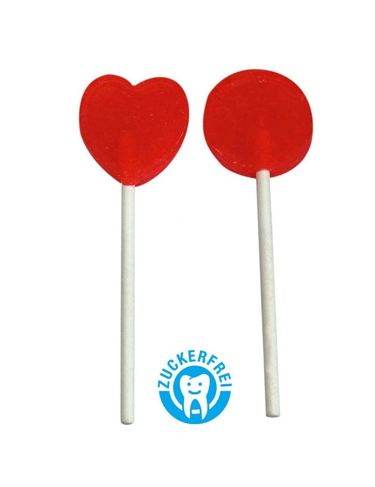 Runder oder herzförmiger zuckerfreie Lutscher in bedruckter weißen oder transparenten Folie. 1 Geschmackrichtung je 10.000 Stück. Falls Sie eine Mischung verschiedener Geschmackssorten wünschen (z. B. Zitrone, Kirsche, Mandarine, Apfel, Cola, Erdbeere, usw.), können Sie 1 Geschmack je 10.000 Lutscher bestimmen.