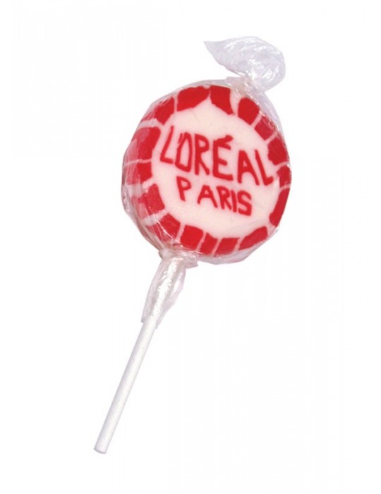 Lutscher mit eingelegtem, durchgehenden Text (Rückseite ist daher spiegelverkehrt), werden in Handarbeit nach alter Zuckerbäckertradition hergestellt. Jeder Lutscher ist in Klarsichtfolie gewickelt. Geschmacksrichtung: Standard Frucht. Andere Geschmacksrichtungen möglich.