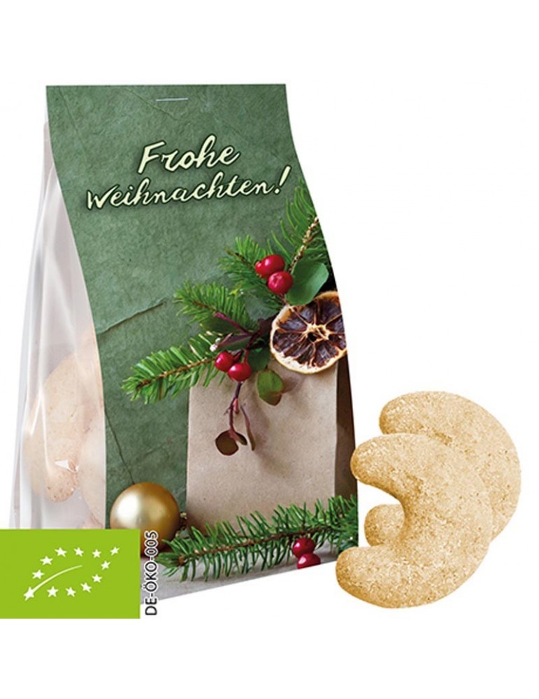 Bio Vanillekipferl, 100g, Express Blockbodenbeutel mit Werbereiter