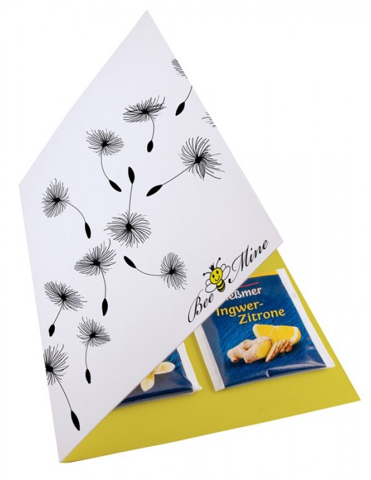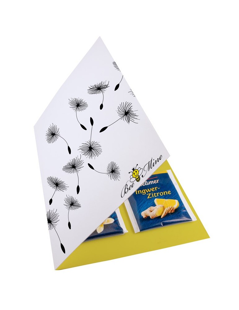 Klappkarte im DinA5 Format mit 4 Meßmer Teebeuteln geklebt an der Innenseite/-n der Karte. Die Werbung drucken wir auf allen Seiten der Klappkarte. Unter "Anhänge" können Sie alle Teesorten herunterladen. Beim Bestellvorgang, geben Sie unter "Kommentare" die gewünschte bzw. gewünschten Tessorte/n ein.