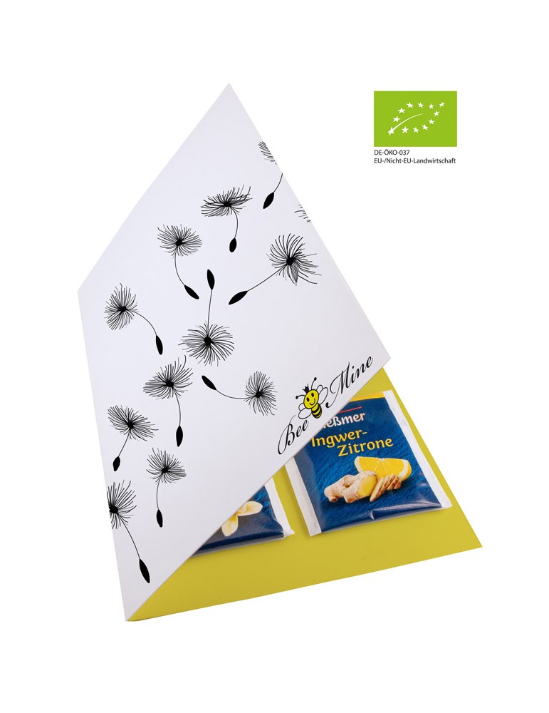 Klappkarte im DinA5 Format mit 4 Meßmer Teebeuteln geklebt an der Innenseite/-n der Karte. Die Werbung drucken wir auf allen Seiten der Klappkarte. Unter "Anhänge" können Sie alle Teesorten herunterladen. Beim Bestellvorgang, geben Sie unter "Kommentare" die gewünschte bzw. gewünschten Tessorte/n ein.
