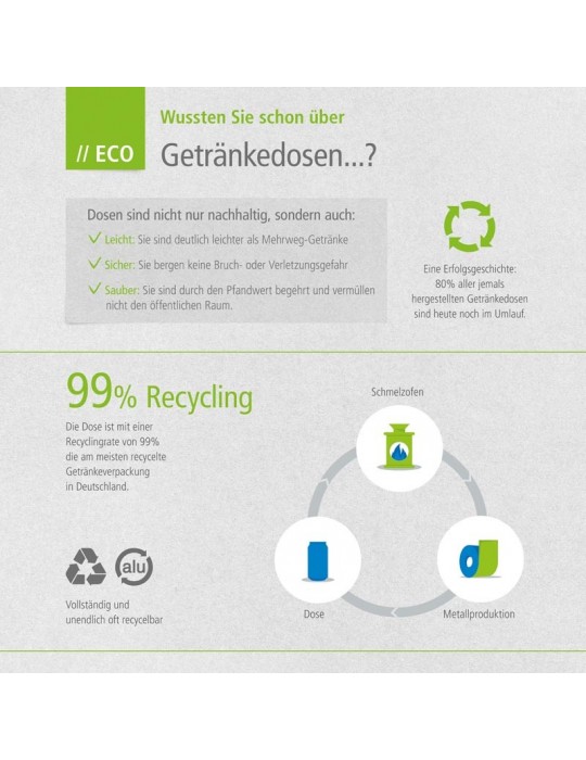 Bei Einsatz in Deutschland zzgl. 0,25 EUR Pfand pro Dose. Deutschlandweite Erstattung durch Rückgabe am Pfandautomaten.