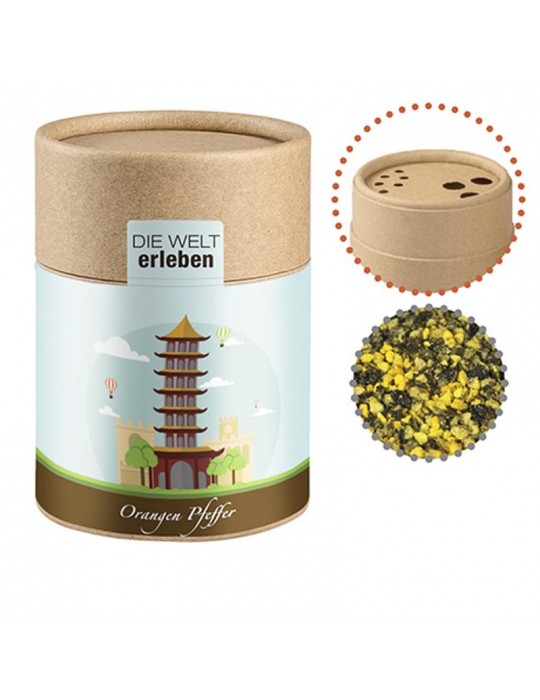 Gewürzmischung Orangen-Pfeffer, ca. 75g, Kraftpapierstreuer Midi