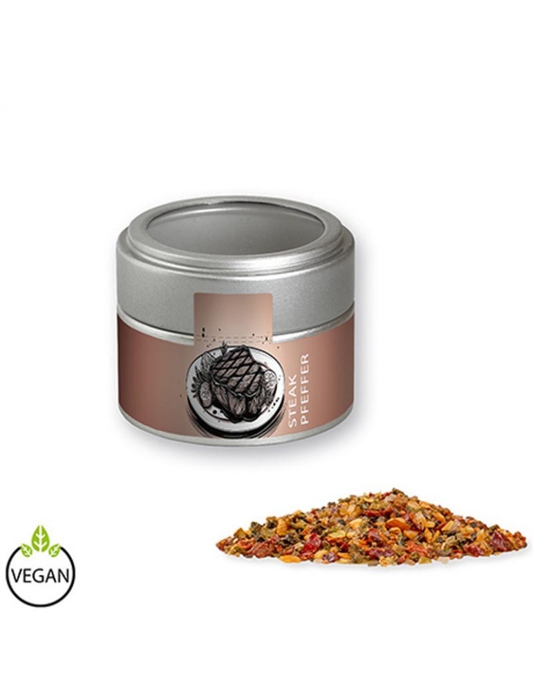 Gewürzmischung Steak Pfeffer, ca. 60g, Metalldose Mini mit Sichtfenster silber