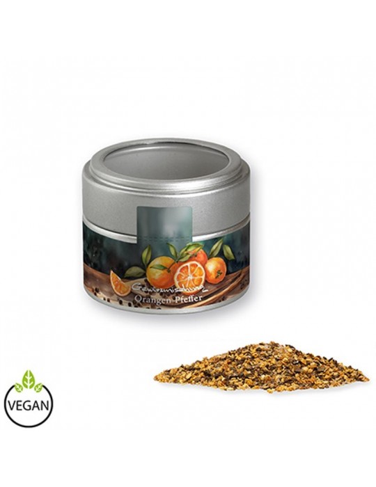 Gewürzmischung Orangen-Pfeffer, ca. 55g, Metalldose Mini mit Sichtfenster silber