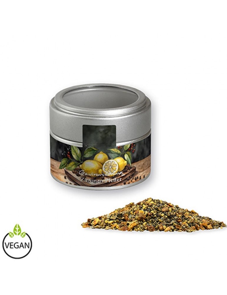 Gewürzmischung Zitronen-Pfeffer, ca. 60g, Metalldose Mini mit Sichtfenster silber