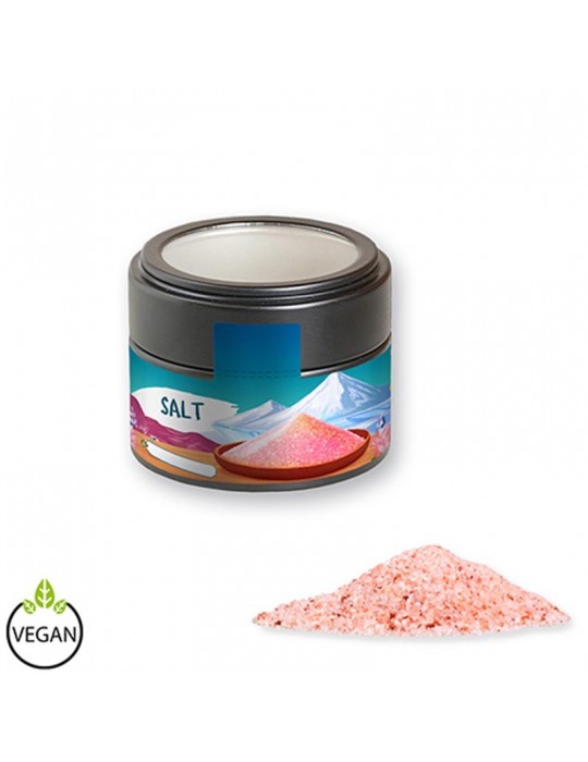 Rosa Kristallsalz, ca. 110g, Metalldose Mini mit Sichtfenster schwarz
