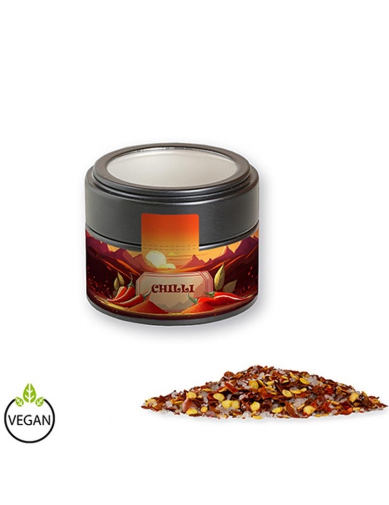 Gewürzmischung Chili-Salz, ca. 45g, Metalldose Mini mit Sichtfenster schwarz