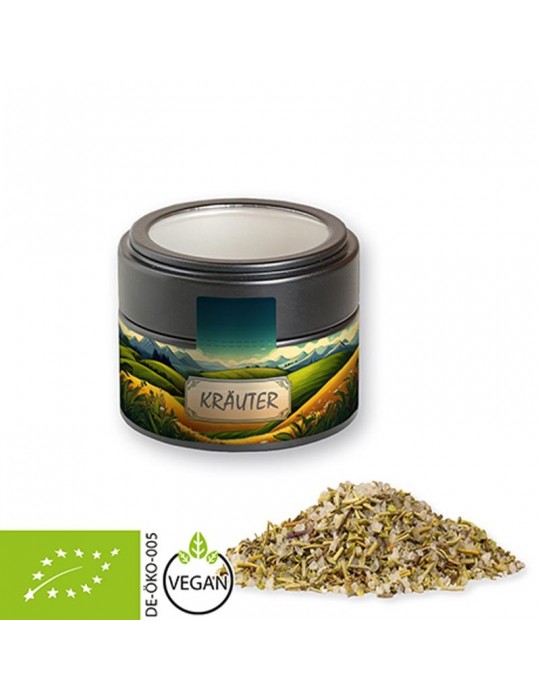 Bio Gewürzmischung Kräutersalz, ca. 75g, Metalldose Mini mit Sichtfenster schwarz