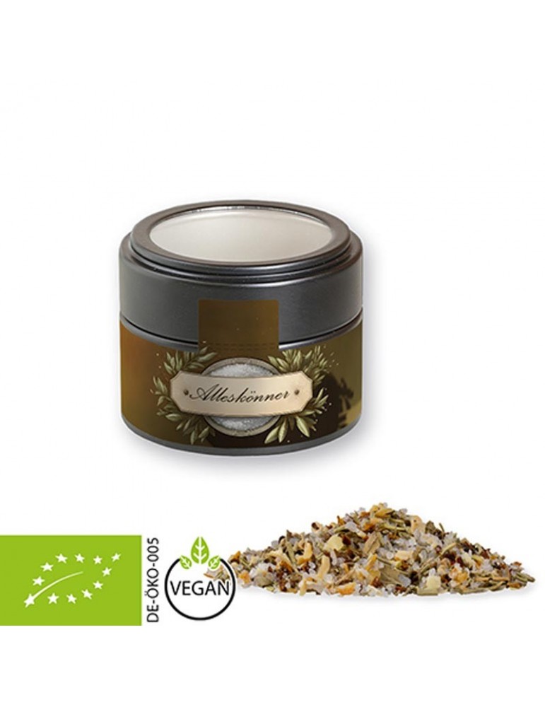 Bio Gewürzmischung Alleskönner, ca. 60g, Metalldose Mini mit Sichtfenster schwarz