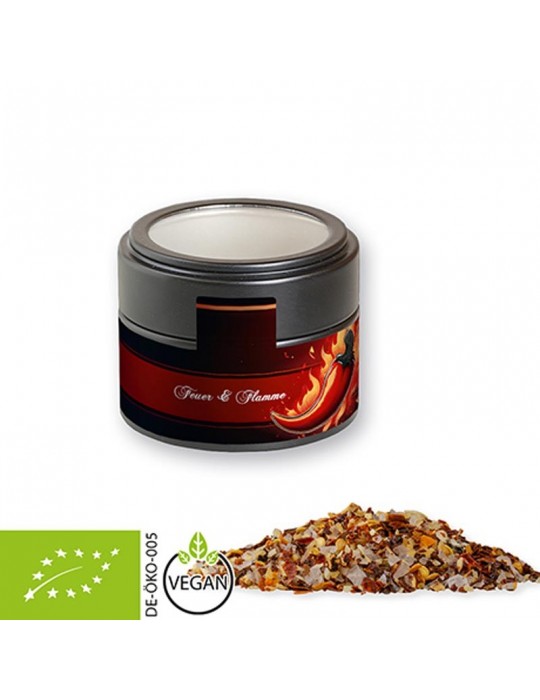 Bio Gewürzmischung Feuer und Flamme, ca. 60g, Metalldose Mini mit Sichtfenster schwarz