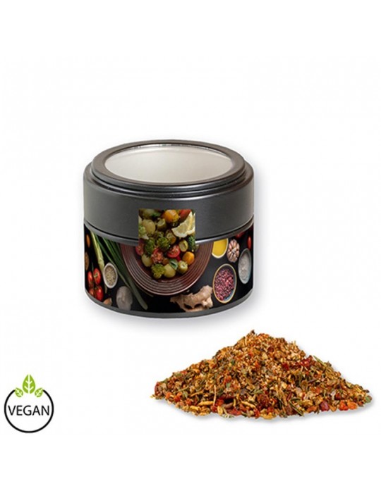Gewürzmischung Mediterraner Veggie Mix, ca. 40g, Metalldose Mini mit Sichtfenster schwarz