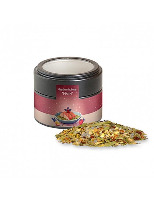 Weihnachts Gewürzmischung Fisch, ca. 55g, Metalldose Mini mit Sichtfenster schwarz