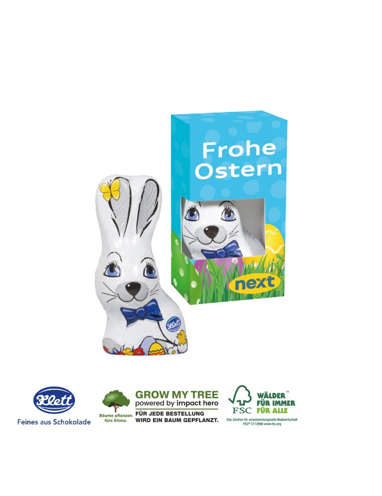 - 1 Vollmilch Osterhase von Klett (ca. 40 g).