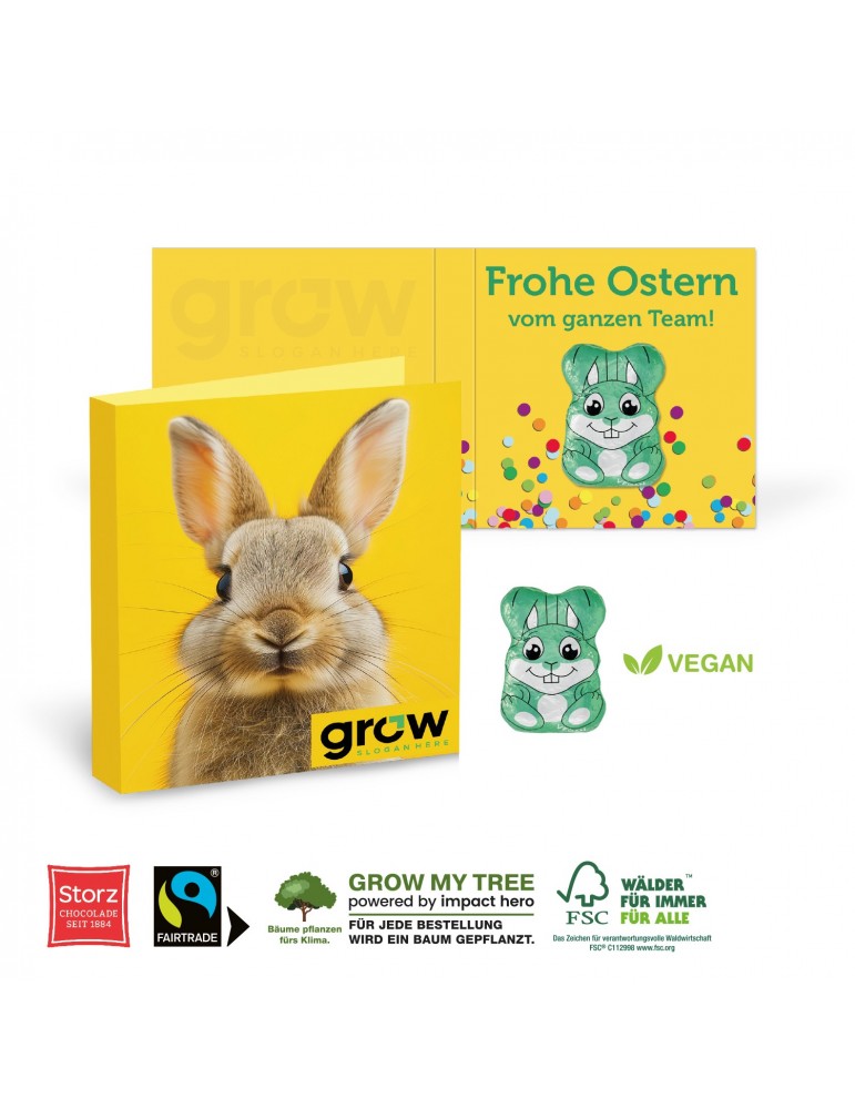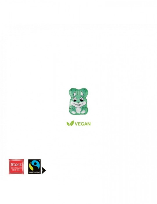 - 1 Mini Häschen vegan von Storz (ca. 6,25 g). Fairtrade® zertifiziert.