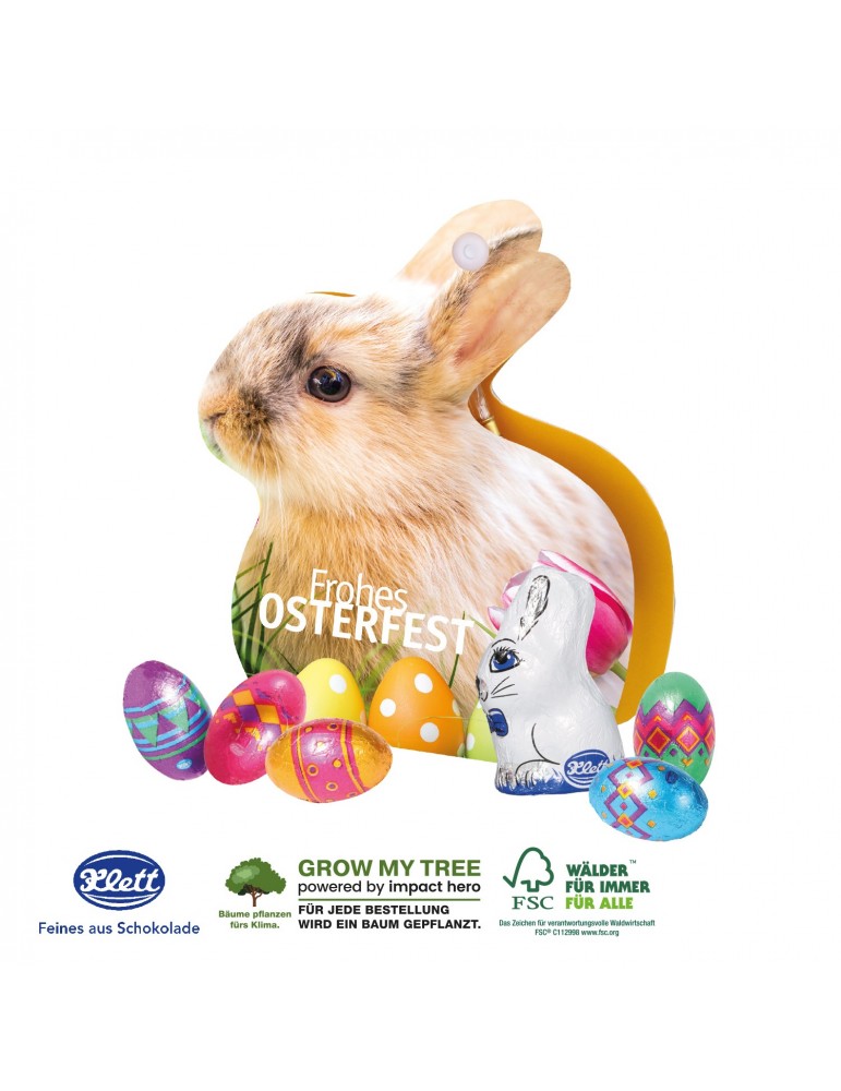 Sympathische Kundenbindung zum attraktiven Preis! Werbe-Osterei oder Werbe-Hase als Tischaufsteller, gefüllt mit Premium-Markenschokolade. Mit seinem perfekten Format findet es Platz auf jedem Schreibtisch!. Produktdetails: Werbe-Osterei oder Werbe-Hase als Tischaufsteller,gefüllt mit feinster Markenschokolade.. Nachhaltigkeit: Für jede Bestellung mit uns wird ein Baum über GROW MY TREE gepflanzt. Wir verwenden FSC® zertifizierten Karton aus nachhaltiger Forstwirtschaft und anderen kontrollierten Quellen.