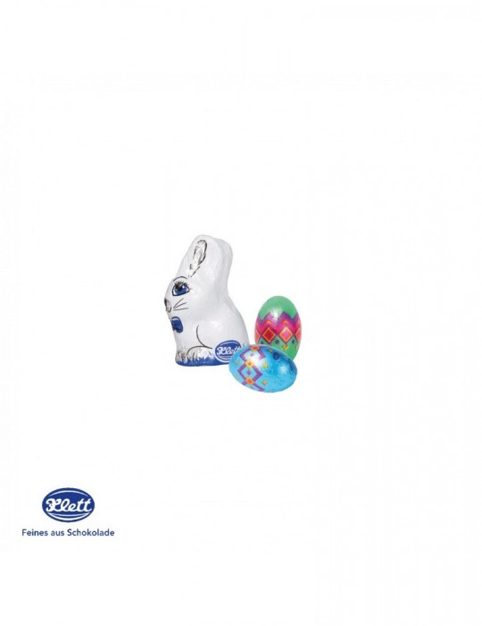 - Vollmilch Schokoladenmischung (ca. 25 g), bestehend aus 2 Stück Schokoladen-Eiern, bunt gemischt und einem Osterhasen von Klett.