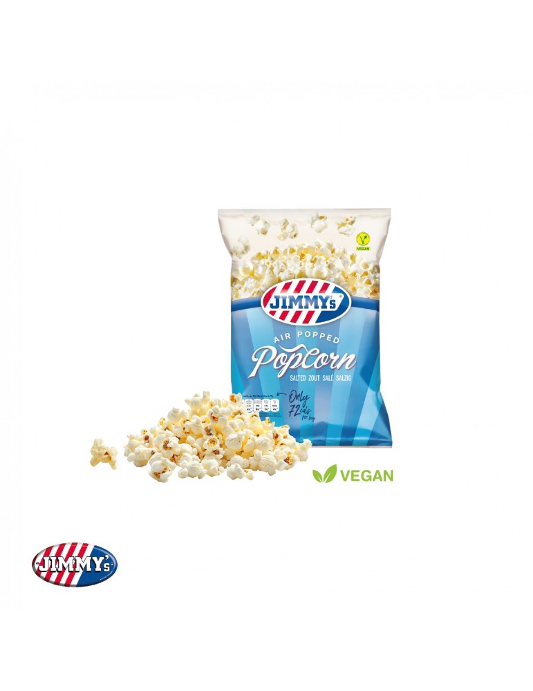- 1 Jimmy‘s Popcorn (ca. 22 g) Mini Bag Salted. Glutenfrei, laktosefrei und für Veganer geeignet.