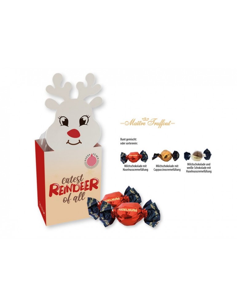 Weihnachtspralinés in Motivkartonage "Rentier"