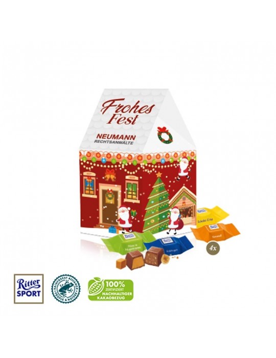 3D Präsent "Haus" mit Ritter SPORT Schokowürfel
