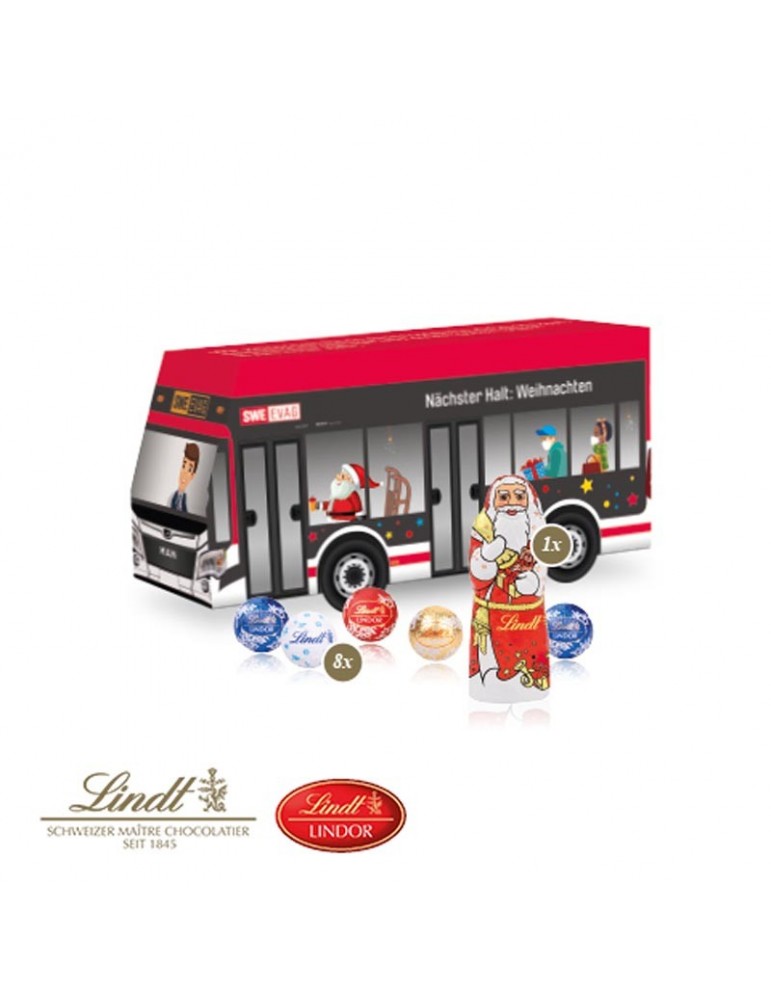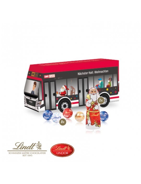 3D Präsent "Bus" mit Lindt Minis und Nikolaus