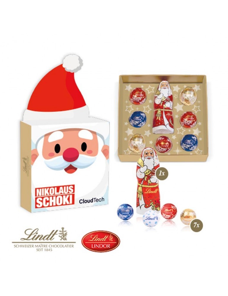 - Schokoladenmischung (40 g): 7 Stück Lindt „Minis“ bunt gemischt und ein zartschmelzender Lindt Weihnachtsmann