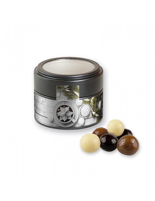 Knusperkugeln-Mix, ca. 45g, Metalldose Mini mit Sichtfenster schwarz