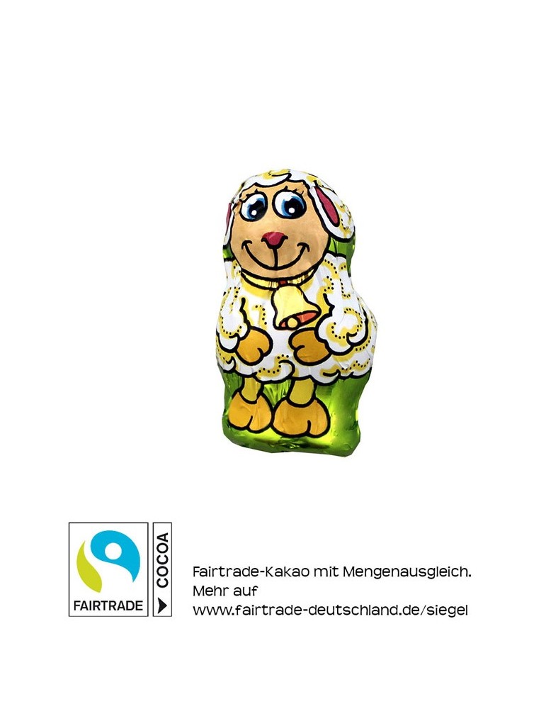 Mini-Lämmchen aus Fairtrade Edelvollmilchschokolade, mindestens 33% Kakao.