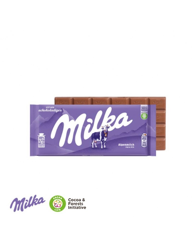 - 1 Schokoladentafel (90 g) von Milka. Geschmacksrichtung: Alpenmilch