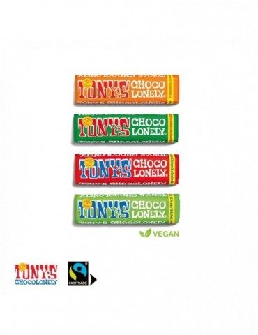 1 Tony´s Riegel (ca. 47 g). Geschmacksrichtungen:Vollmilch, Vollmilch Karamell Meersalz, Zartbitter Mandel Meersalz, Vollmilch Haselnuss.