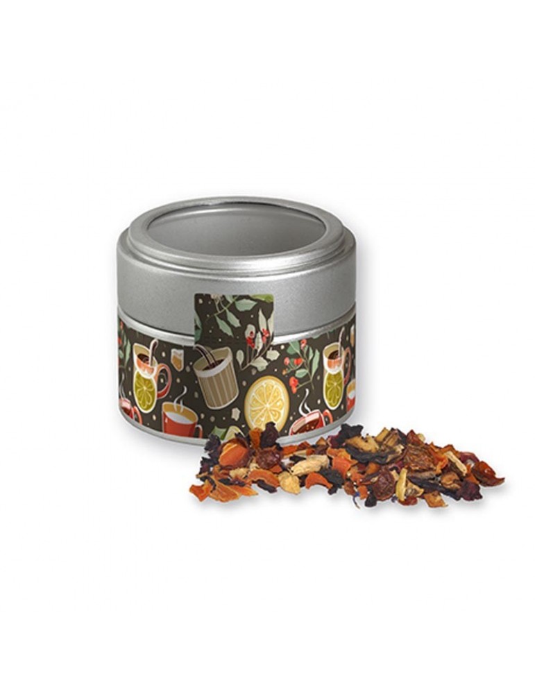 Kaminfeuer Tee, ca. 30g, Metalldose Mini mit Sichtfenster silber