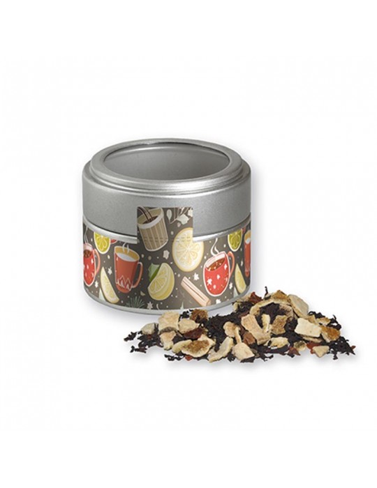 Wintertage Tee, ca. 35g, Metalldose Mini mit Sichtfenster silber
