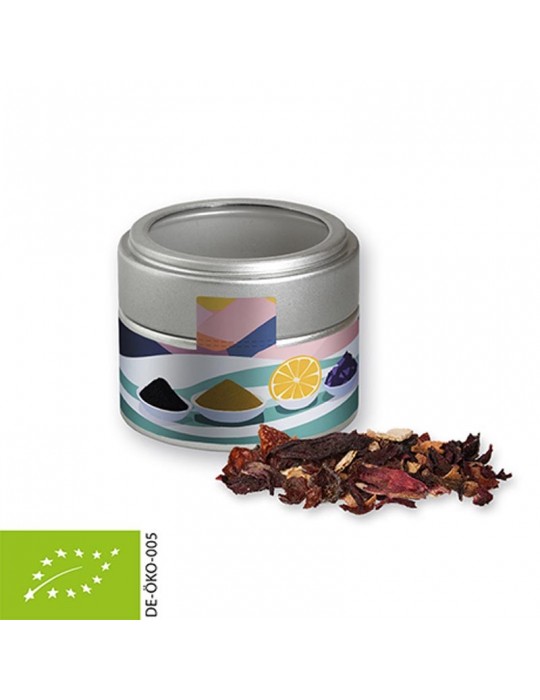 Bio Weihnachts Früchtetee, ca. 30g, Metalldose Mini mit Sichtfenster silber