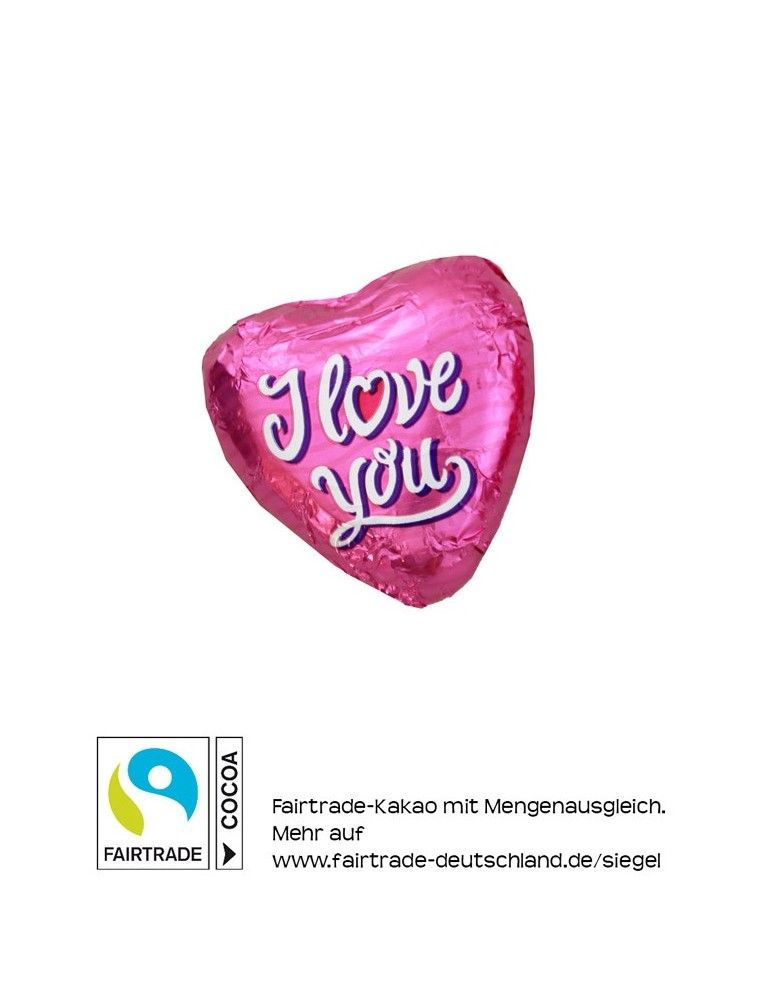 Schokoladen-Herzen aus Fairtrade Edelvollmilchschokolade, mindestens 33% Kakao.