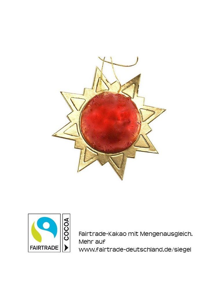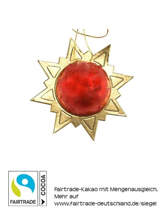 Schokoladen-Starlight mit Goldfaden aus Fairtrade Edelvollmilchschokolade, mindestens 33% Kakao.