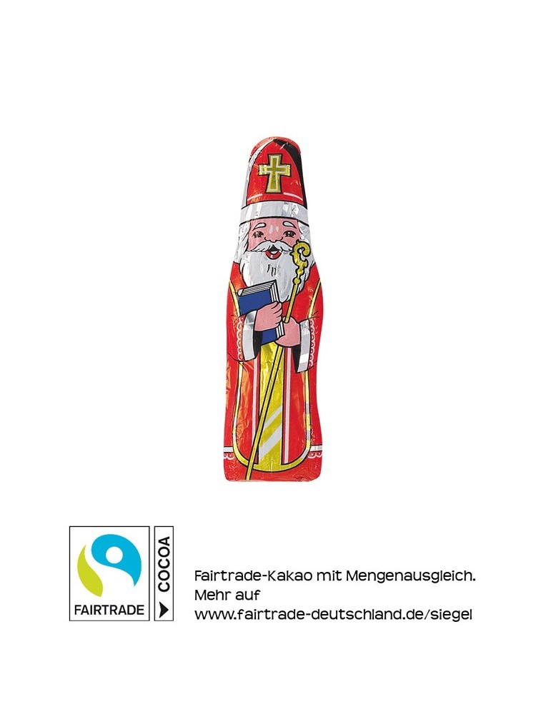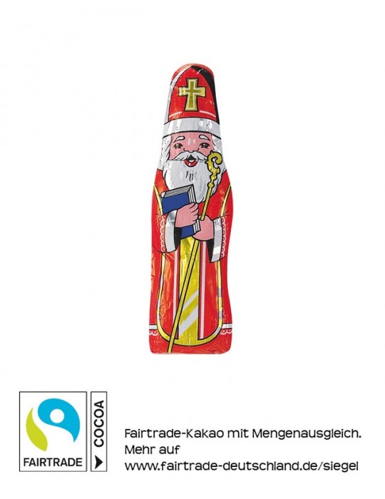 Nikolaus aus Fairtrade Edelvollmilchschokolade, mindestens 33% Kakao.