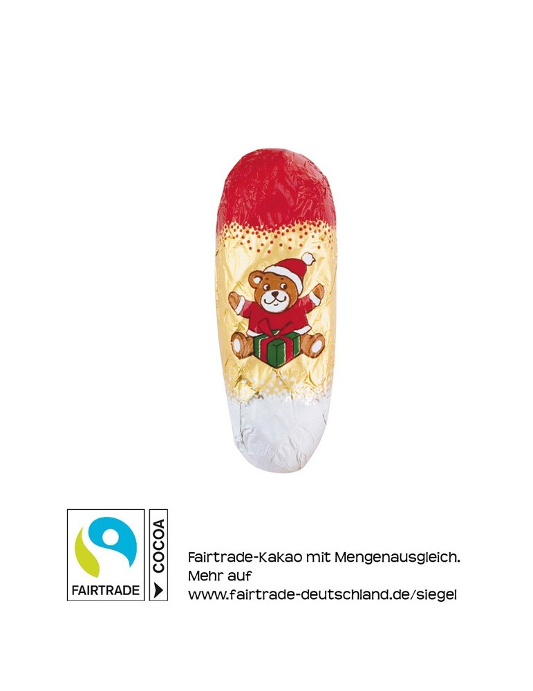 Weihnachtszapfen aus Fairtrade Edelvollmilchschokolade, mindestens 33% Kakao.