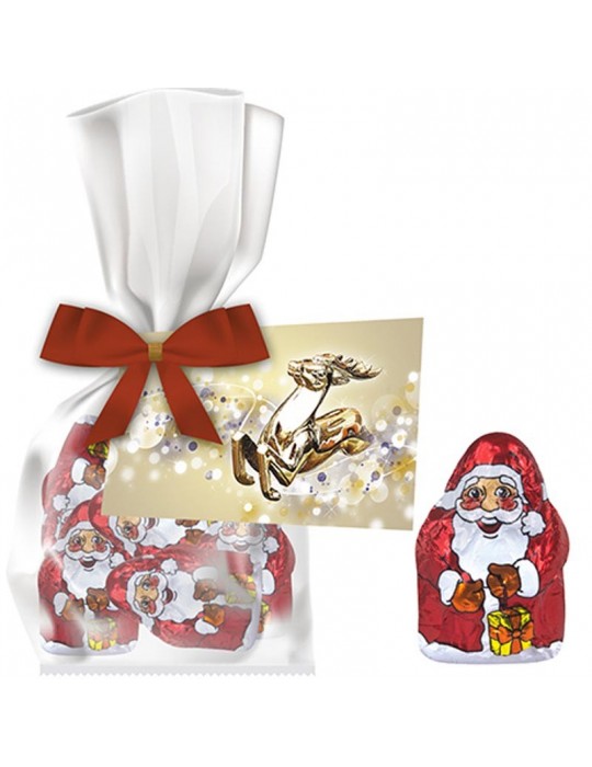 Mini Schoko-Weihnachtsmänner, ca. 35g, Express Flachbeutel mit Schleife mit Werbekarte