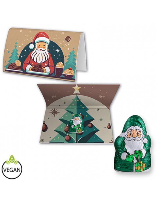 Mini Schoko-Weihnachtsmänner vegan, ca. 7g, Werbekarte A6 gefaltet