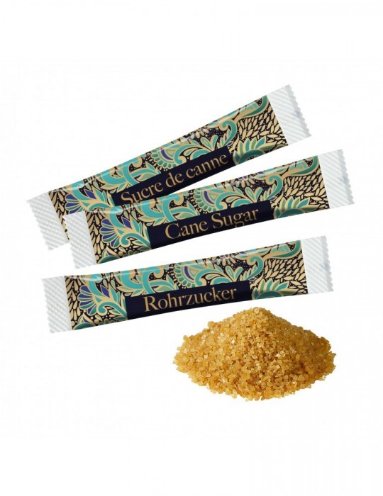 Brauner Zucker im Papierstäbchen